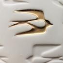 Lenox porcelain vase from the Gold Rush Series. Cream-colored porcelain with molded design of birds in flight, some accented with gold. Measures 10"H. Made between 2014-18. Nice condition with no chips or cracks. Inglenook Antiques...Established 1989.