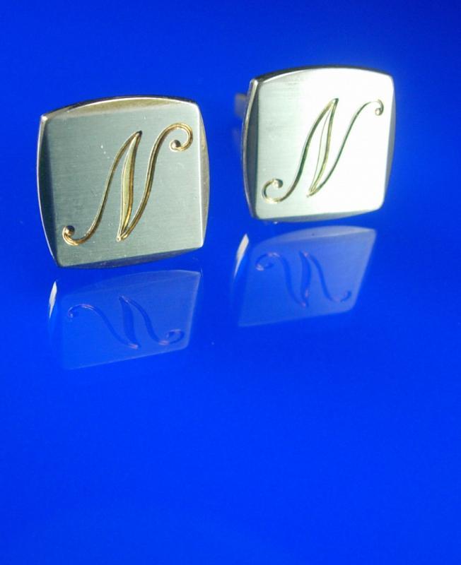 Letter N Cufflinks Vintage Two Tone silver and gold personalized signet initial Wedding groom gift Business suit accessory Birthday