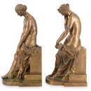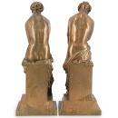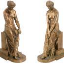 Our pair of bronze figures in the Roman neoclassical style depicting semi-nude females in classical robes by Alexandre Schoenewerk (French, 1820-1885) each measure 22 by 8.5 by 11 inches. "A.Schoenewerk".