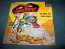 Decca Records The Adventures of the Lone Ranger created by George Trendle. He Rides The Iron Horse is number nine in a series. Record shows lots of scratching; paper and plastic covered sleeve has one long slice across the front, quite a few corner bends and creases. Copyright 1955 The Lone Ranger Incorporated.