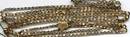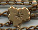 What a lovely and delicate looking long chain. The rosey hue reminds me of 10kt, but the slide is more yellow. The shield shaped slide has a pie crust edge. The diamond chip, we do believe it is a diamond chip, is probably 2 points or less. Quite lovely! The chain is aprox. 50" long and the slide is 3/8" by 3/8".