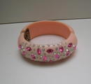 Lucite Weiss Pink Rhinestone Hinged Bangle