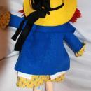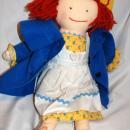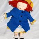 Her felt jacket and coat are in decent condition. Her dress and pinafore may not be original however they are hand made and fit her perfectly. There is also some wear showing on the tip of the velveteen boot toe.