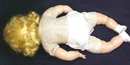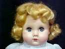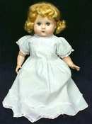 Offering this adorable transitional mama doll, circa 1920's-50's, hard plastic head, arms, and legs, cloth body. Her face is so loveable! - large sleep eyes with full lashes - she even has tiny wrinkles under her eyes which gives her such an expression!; retains her cheek blush, lips look like they may have been repainted at one time, under the lovely honey blonde saran stitched wig (which has wonderful curls) is her molded hair. Still retains mama crier but does not work. Measures 18 inches long, good+ condition, cloth body is good, clean, no holes or stains, has some age darkening as expected. Arms and legs are good+, no cracks, few normal wear marks, still retains blush on knees. Head is good, as stated above, only defect is there is a crack on the back of her neck going up onto the head about 2 inches long, not seen as wig covers it; also there is a tiny hairline crack under her chin at neck base, does not detract from looks. Comes with a pair of white rubber shoes, rayon satin undies, and a pretty mint green dress made of batiste, adorned with cream color lace trimming. A beautiful doll for your collection!