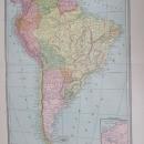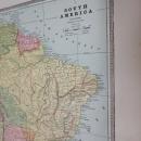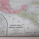 Offering this wonderful old 1883 Crams large fold out map of South America. On the reverse side of the fold out side is Mexico, Cuba, & Central America, and on the other side is photos of "THE FOUR QUARTERS OF THE GLOBE" showing hunters and game in various lands. This map was engraved by George F Cram copyright in 1883, and printed by Henry S Stebbins, Chicago. These individual maps do not have the date on them but were part of Cram's Unrivaled Family Atlas, dated 1883, these maps are not reproductions but are authentic copyright 1883. The size of the actual large fold out measures 14.9 inches x 11.2 inches from printed border frame to border frame, has center fold. The Mexico map is 11.75 x 9.0" with no fold line. Good++ condition, no holes or tears or stains. Very nicely detailed, excellent colors; mat and frame this handsome piece of history for your home or office or an antique gift!