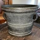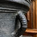 Our magnificent and massive European bronze mortar measures 12 3/8 inches tall and 9 1/4 inches across, and weighs 95 lbs. Roman numerals AD M DC X V II date the piece to AD 1617.