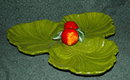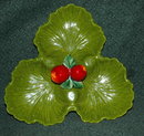 Maurice California USA Relish Platter. As you can see it is has a leaf motif with apples in the center. Please refer to the pictures for the size. The condition is very good. I see no damage what so ever.