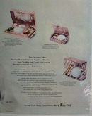 Max Factor Christmas Ad 1951 This is a December 18, 1951 advertisement. It is a nice, two page, color ad from Max Factor. Shows a pretty lady sitting and looking up at mistletoe Ad reads, Mostly with a man in mind. Ad shows different gift ideas. In excellent condition. Photo is taken through plastic and may show wrinkles or crookedness that is not in the ad. This original magazine tear sheet measures 10 inches wide by 13 inches tall.