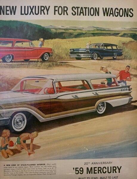 Mercury country cruisers 2 pg Dec 15, 1958 featuring the new 1959 station wagon ad. Magazine tear sheet picture is taken through plastic and may show wrinkles or crookedness that is not in the ad. This original magazine tear sheet measures 10 inches wide by 13 1/4 inches tall.