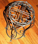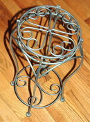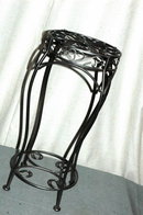 Metal Plant Stand. It measures 18" high. I am not sure if it is iron or steel but it has a pewter tone. The condition is excellent, like new.