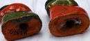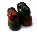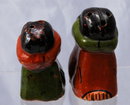 Mexican Indian Woman & Child Salt & Pepper Shakers. They are quite old and made of a heavy thick walled clay or painted plaster. There are no stoppers .