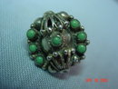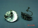 These round dome shaped silver screwback earrings have small jade beads mounted in them. On the fronts of the screwback parts closest to the earring is a partial stamp on the round area. I believe it says something like "Made in Mexico," or "Silver Mexico." It is a very small area, but it looks like there are three lines of writing, but the imprint is not strong. The last line is definitely "Mexico, and one letter in the middle line is definitely "i."