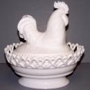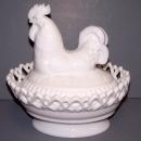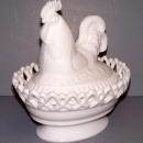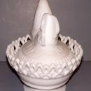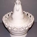 This is a lovely mild glass of a hen on a nest. It is 7 3/4 inches tall, 6 inches wide and 7 1/2 inches long. This hen is very detailed and would make a great addition to your collection.