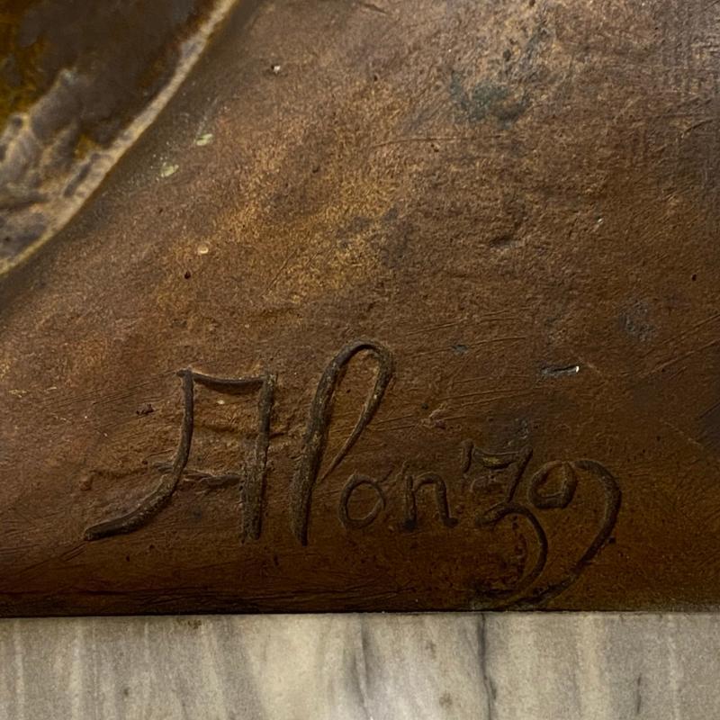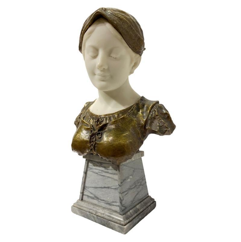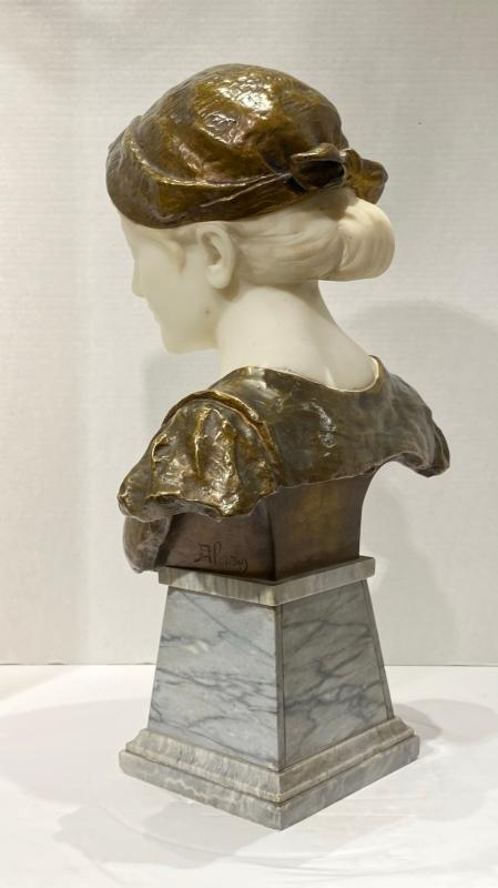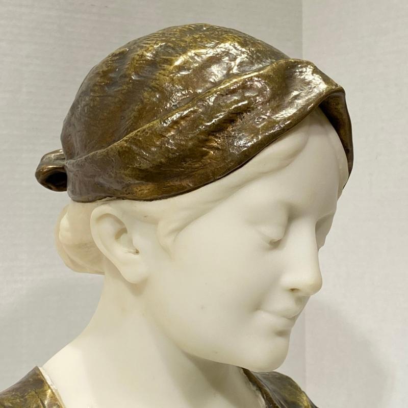 Dominique Alonzo Female Bronze and Marble Bust Sculpture