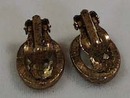 Mother of Pearl Ear Rings. This is a pair of mother of pearl clip earrings set in an antique gold color. Very good looking !. Deep set with a tiny rope edge design. In mint condition and probably from the 1970's. They measure 1/2" by 3/4". Please Note pictures may be larger than actual size