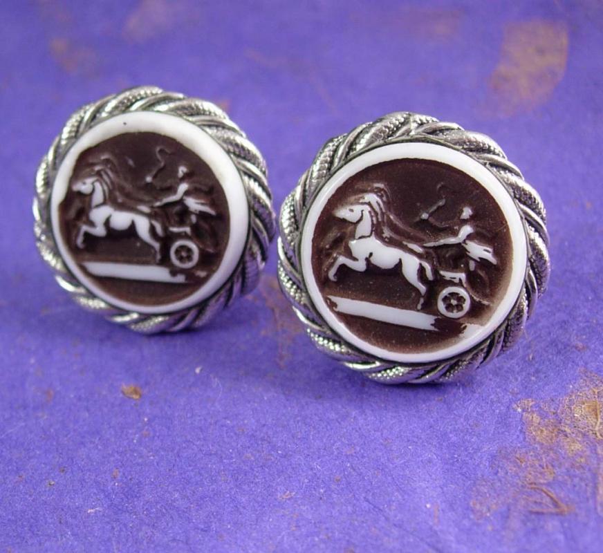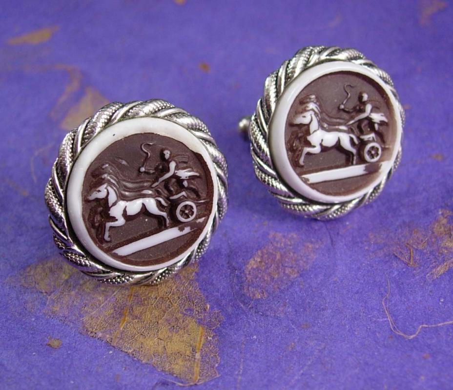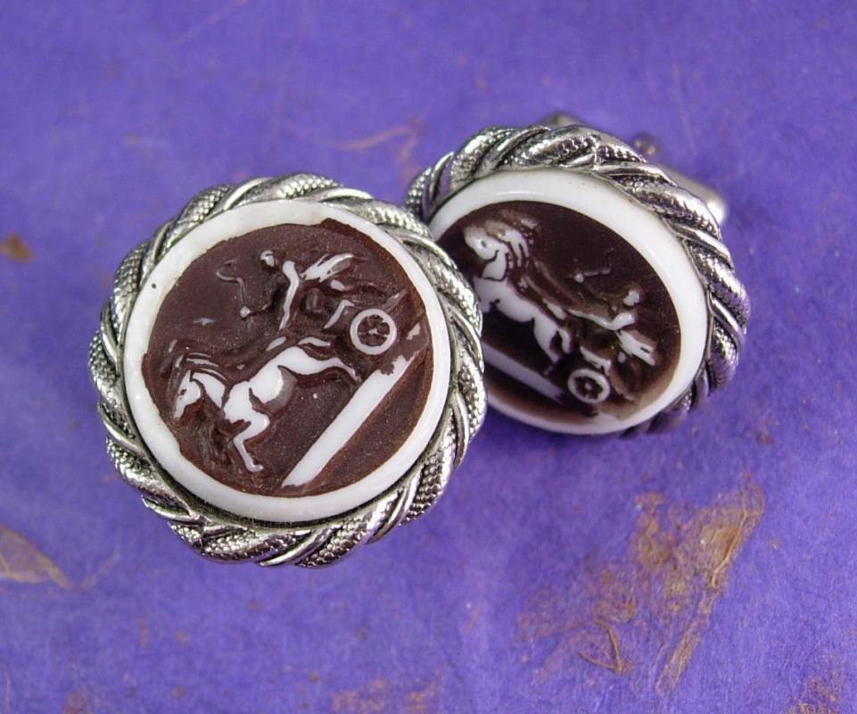Mythical Chariot Cufflinks Vintage Rope Designed Silvertone Edging mens cuff links Roamn Greek Unisex Kaflinks