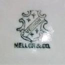 Independence Hall souvenir ceramic plate, made by Mellor & Co./Cook Pottery, Trenton New Jersey. Shield mark, dates from the late 1800's-1900's. Blank pattern is "Vernon". Measures 8"d. Gold metallic trim. Overall crazing, but no chips or cracks. Sold as is. Inglenook Antiques...Established 1989.