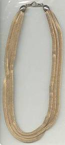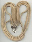 Sheer elegance! Just about sums it all up for this lovely little necklace. It is made up of three rolled mesh "chains". There are some "crimps" in some of the mesh, but not really noticable while wearing. It is approx. 22" long. It has a lobster claw clasp. It is unmarked. The shipping fees quoted are for priority/No insurance in USA.