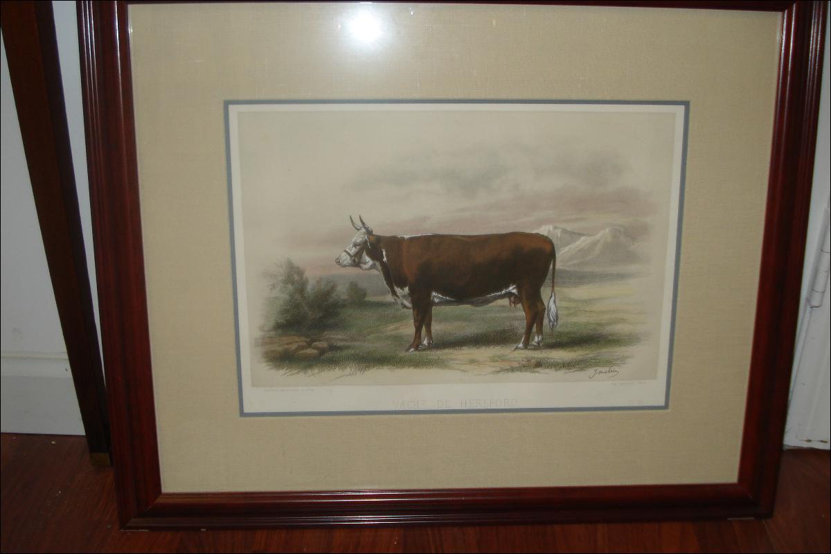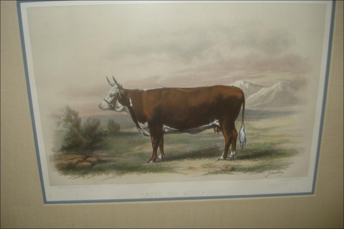 Nineteenth Century Hand Colored Copperplate Engraving by M. Emile Baudement, "Vache De Hereford" (Cow)
