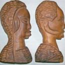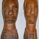 Vintage Haitian Wood Carvings Male/Female Bust Pair 6.75"H African-Descent