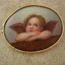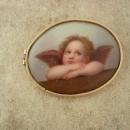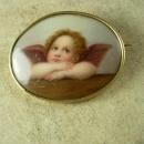 Antique 14kt GOLD 1880s Brooch Raphael Angel Cupid cherub handpainted on porcelain Large estate jewelry