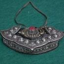 Antique 18th-19th century mounted in low-grade silver Tibetan women's belt pouch -Purse (Baghu). Tibetan women have worn this type of pouch on their belts as a sign of wealth and prestige.