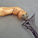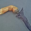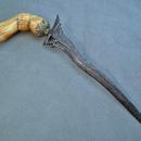 A finely hand-carved bone handle (Hulu or Ukiran) in the form of Jawa Demam, a pre-Islamic deity who is half-bird, half-human.