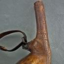 Overall, this antique gunpowder flask is not only a beautiful piece of craftsmanship but also a testament to the ingenuity and practicality of our ancestors.