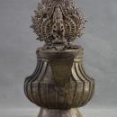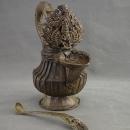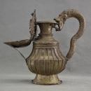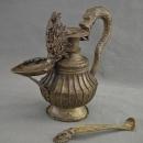 The pitcher holds fuel made of clarified yak butter, which is used during rituals. The fuel was then ladled into a beautifully crafted, leaf-shaped dish called a dalupa.
