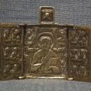 Antique Russian Brass Traveling Icon Triptych Saint Nicholas 19th century