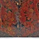 CONDITION: Showing age and usage, with an old patina and wear, flakes in the paint, old age vertical cracks, and some wear on the edges as consistent with its age (typical in lacquer work).