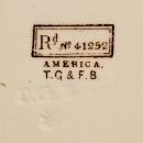 "America" pattern plate, made by Thomas G. & Frederick Booth of Staffordshire, England. Registry date of 1886, #41252. Beautifully ornate design in brown transfer. Several marks on back. Measures 8 5/8"d. Good condition with only minor rim imperfections, no large chips or cracks. Sold as is. Have 2, priced separately, but happy to combine shipping. Just contact me before ordering. See our other listings in this pattern! Inglenook Antiques...Established 1989.