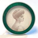 Our lovely circular picture frame by Cartier dates from as early as 1902 and features brilliant green enamel and an old photograph of a lady. It measures 3 3/8 inches in diameter and comes with its original leather gift box with satin lining.