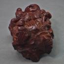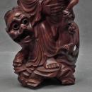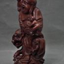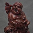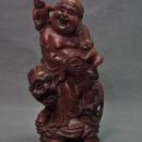 Antique Chinese Rosewood Sculpture Laughing Buddha Budai Hotei on Foo Dog