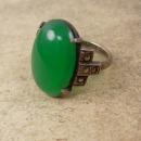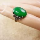 Antique Chrysoprase sterling deco ring with marcasites Stone of Venus