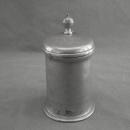 It features a tapered cylindrical shape with molded rims, a "C" section handle with a squared-off terminal, and a flat, domed hinged lid with a ball thumbpiece.