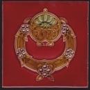 Terrific art nouveau garland design from H. & R. Johnson, Ltd., Cobridge, England (design registered in 1905 by Meakin) with a rich red background. The tile is in excellent original condition with a few fleabites at lower right edge, as shown. Please write with any questions you may have.