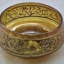 Antique Middle Eastern Islamic Amber Gold Painted With Arabic calligraphy.