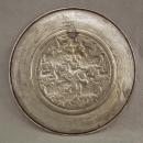 Antique Middle Eastern Islamic Tinned Copper Plate With Hunting Scene