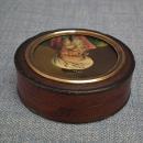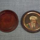 Or Best OfferA rare antique snuff box from the 18th-19th century, made of lacquered burr wood, features a circular form with a lid that is meticulously hand-painted. The lid displays an intricately detailed portrait of a Turkish Ottoman Sultan or Pasha.