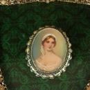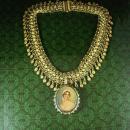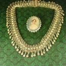 Antique Portrait necklace Vintage 800 Gilt silver Cannetille Choker & Brooch Hand painted cameo on silk or hair Victorian fringe collar set