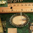 This is a gorgeous portrait brooch that is hallmarked 800 silver. The filigree or Cannetille work on these pieces look like delicate lace and are a true piece of art. Cannetille is a wirework decoration which uses coiled and twisted wire to achieve a delicate scrolling effect. It has a HIDDEN clasp underneath that can connect it to the wide fringe gilt necklace. The necklace measures 15" long on the inside. The brooch is 1 3/4" long and is a hand painted portrait in hair or woven silk ( see back) under glass. Really exquisite!