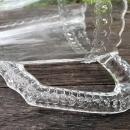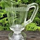Early American Pattern Glass creamer, or cream pitcher, in the "Scalloped Tape" pattern. Made in the 1880s by a currently unidentified maker. Clear glass; stands 5.75"h. Nice condition with no chips or cracks. Inglenook Antiques...Established 1989.