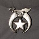VINTAGE SHRINERS SILVER CRESCENT SCIMITAR STAR SPHINX MASONIC CAR EMBLEM GRILL MOUNT ORNAMENT , HOOD ORNAMENT, CHROME