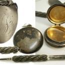 Antique sterling Chatelaine / dance card / compact coin holder / mechanical pencil / Fully hallmarked / silver finger ring