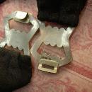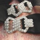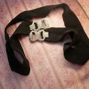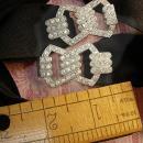 This antique belt buckle is made of rhodium plate and paste rhinestones. The belt is black which was proper for the mourning period in the Victorian era. It measures 31" when fully closed and is 1 1/4" at its widest. What a neat old piece of victorian history this!