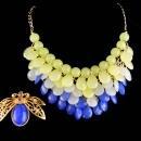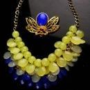 OOAK Fabulous Exotic Beetle necklace / winged golden Insect brooch - HUGE teardrop bib - vintage statement jewelry - cleopatra's jewelry