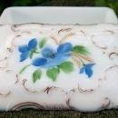 Antique Opal/Milk Glass Covered Box HP Blue Flowers Ca. 1900