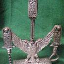 This is a combination of 4 pieces. There is stand with a double eagle design. This holds a bottle opener, corkscrew and a nut cracker (top of eagle). The handpieces have a double eagle as shown in the last photo. These are in very good conditon with no marks. No additions or repairs. We accept VISA, MASTERCARD, DISCOVER, and AMERICAN EXPRESS payment via Paypal or you can pay with a money order or check. Buyer pays S&H.