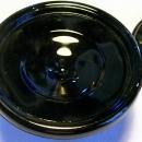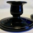 Paden City Glass candlestick pair in ebony black, otherwise known as "black amethyst". Circa 1930, each measures 3 7/8"d x 2.5"h. No chips or cracks, nice condition. Inglenook Antiques...Established 1989.